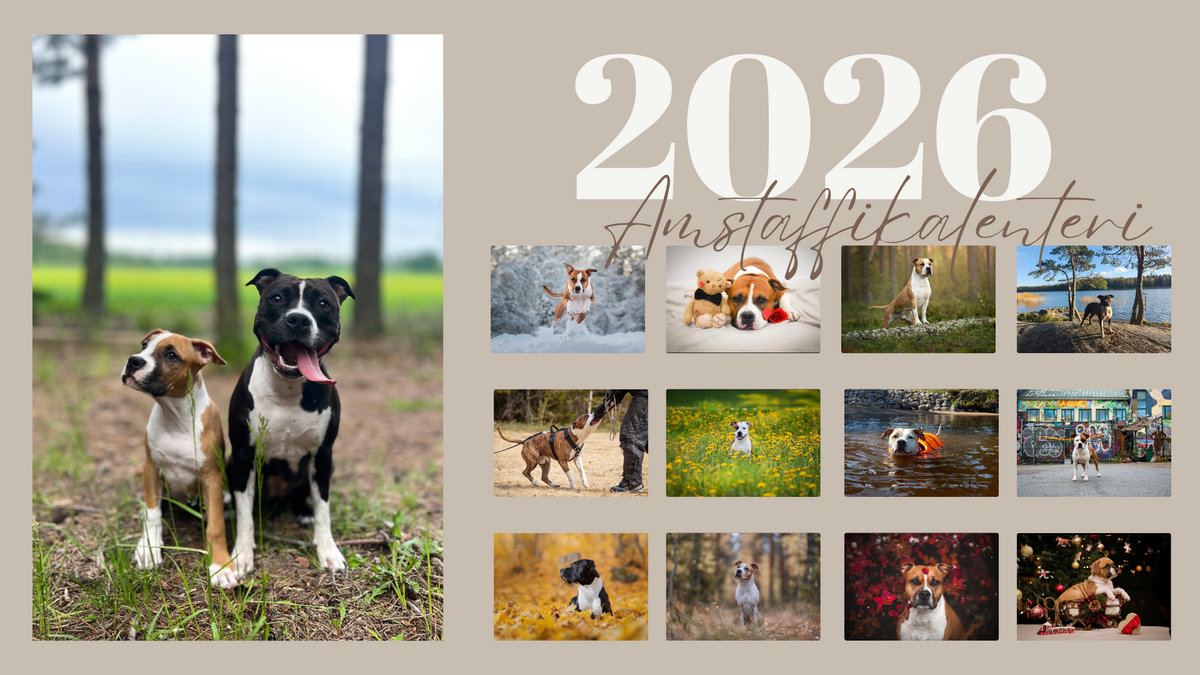 Älä jää ilman - kalentereita on rajallinen määrä! Tilaa heti ja nauti amstaffien seurasta läpi vuoden 2026!